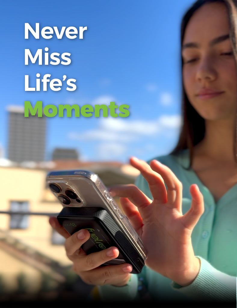 The FuelRod MAX10 supports Qi-enabled wireless charging and MagSafe for iPhones. Simply place your device on the charger’s wireless pad, located on the back of the MAX10. Look for the circle with the green plus sign (+), which indicates the wireless charging area. Once your device is properly aligned, it will begin charging instantly—no cables required.