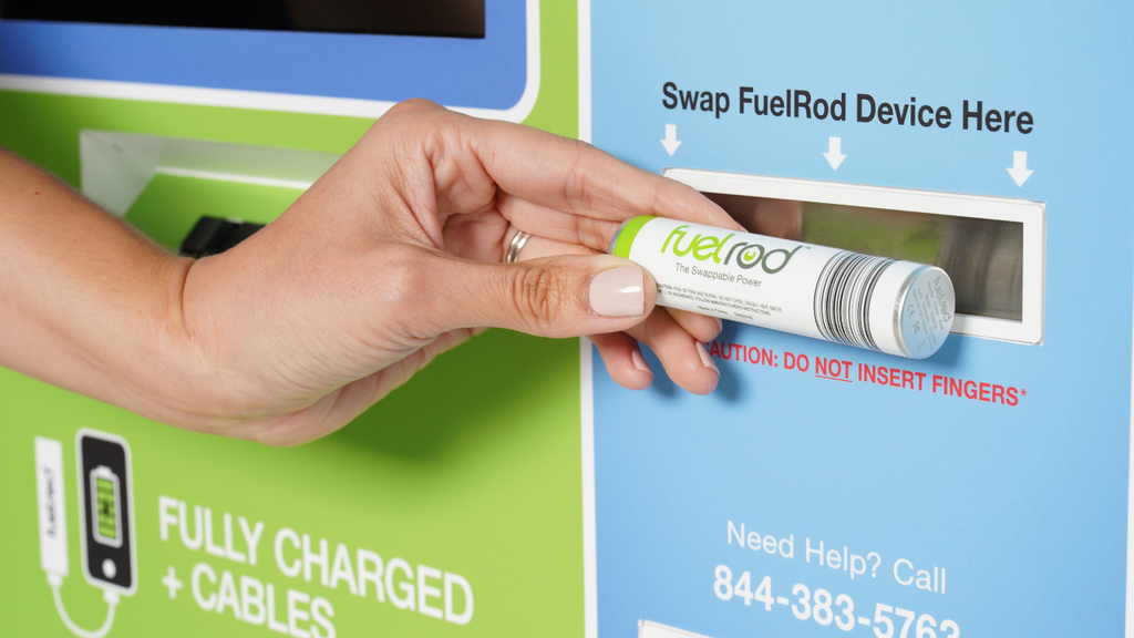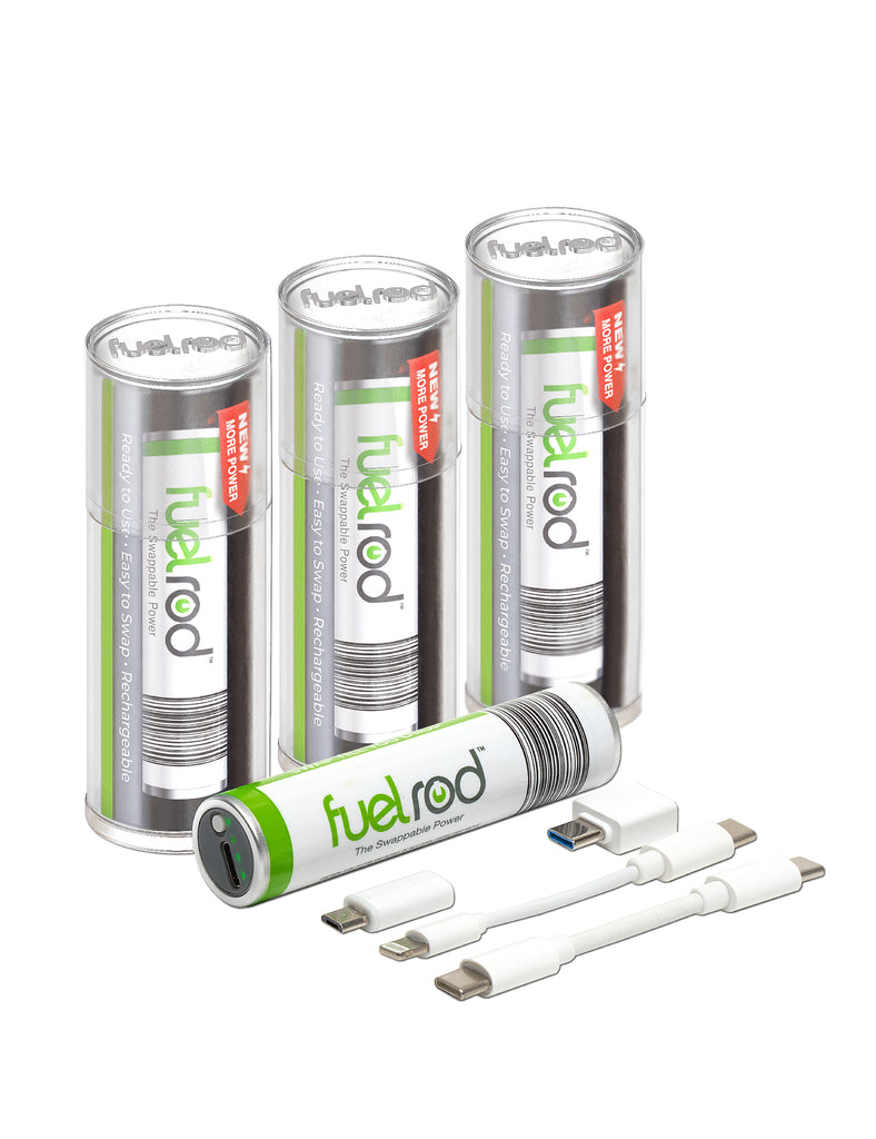Learn HowFuelRod is the first sleek and compact portable charger that allows you to recharge or SWAP your used Rod for a freshly charged one at any of the FuelRod touch-free* kiosk. FuelRod makes it fast and easy to power your phone or tablet on the go, never run out of battery again! Now introducing the NEW FuelRod (USB-C FuelRod Kit).